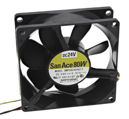 Sanyo Denki San Ace 9WP Series Axial Fan, 24 V dc, DC Operation, 61.9m³/h, 1.68W, 70mA Max, IP68, 80 x 80 x 25mm
