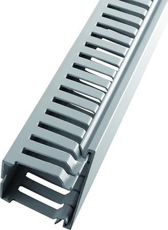 RS PRO Grey Slotted Panel Trunking - Open Slot, W25 mm x D75mm, L2m, Halogen Free PC/ABS