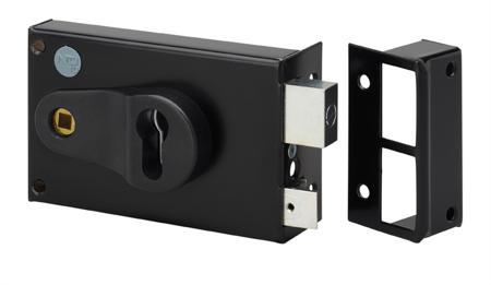 Dom Metalux Black Steel Rim Lock, Key Unlock