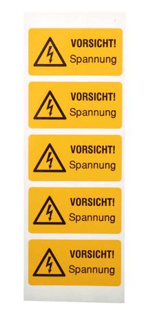 Idento Yellow PVC Safety Labels, VORSICHT! Spannung-Text