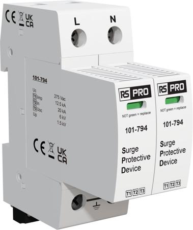RS PRO Single Phase Industrial Surge Protector, 50kA, 1.35kV, DIN Rail Mount